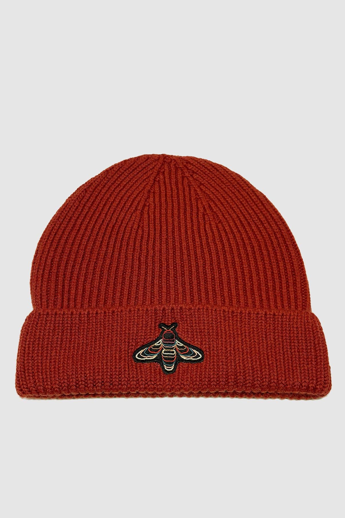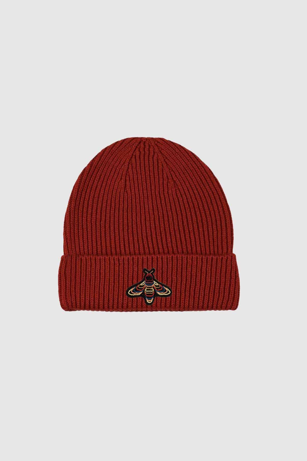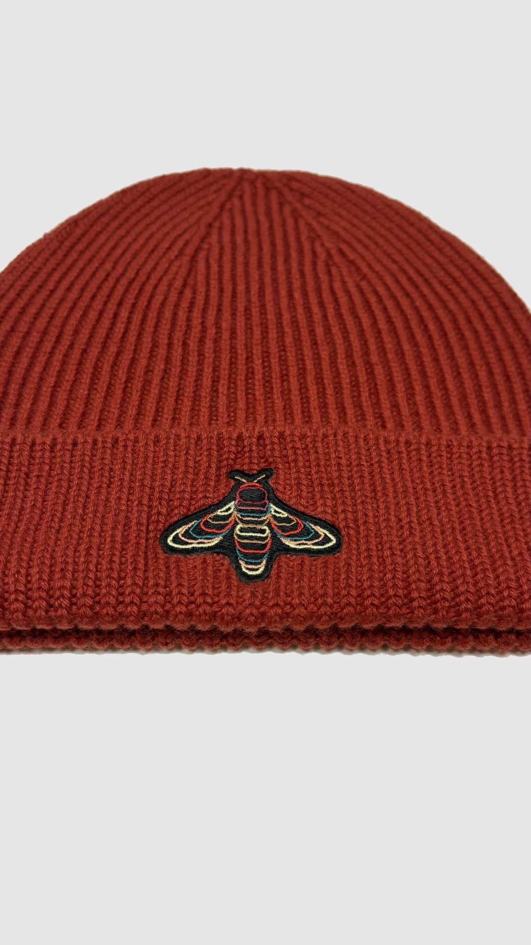Bonnet en laine mérinos Piment Made in France avec broderie ABEILLE