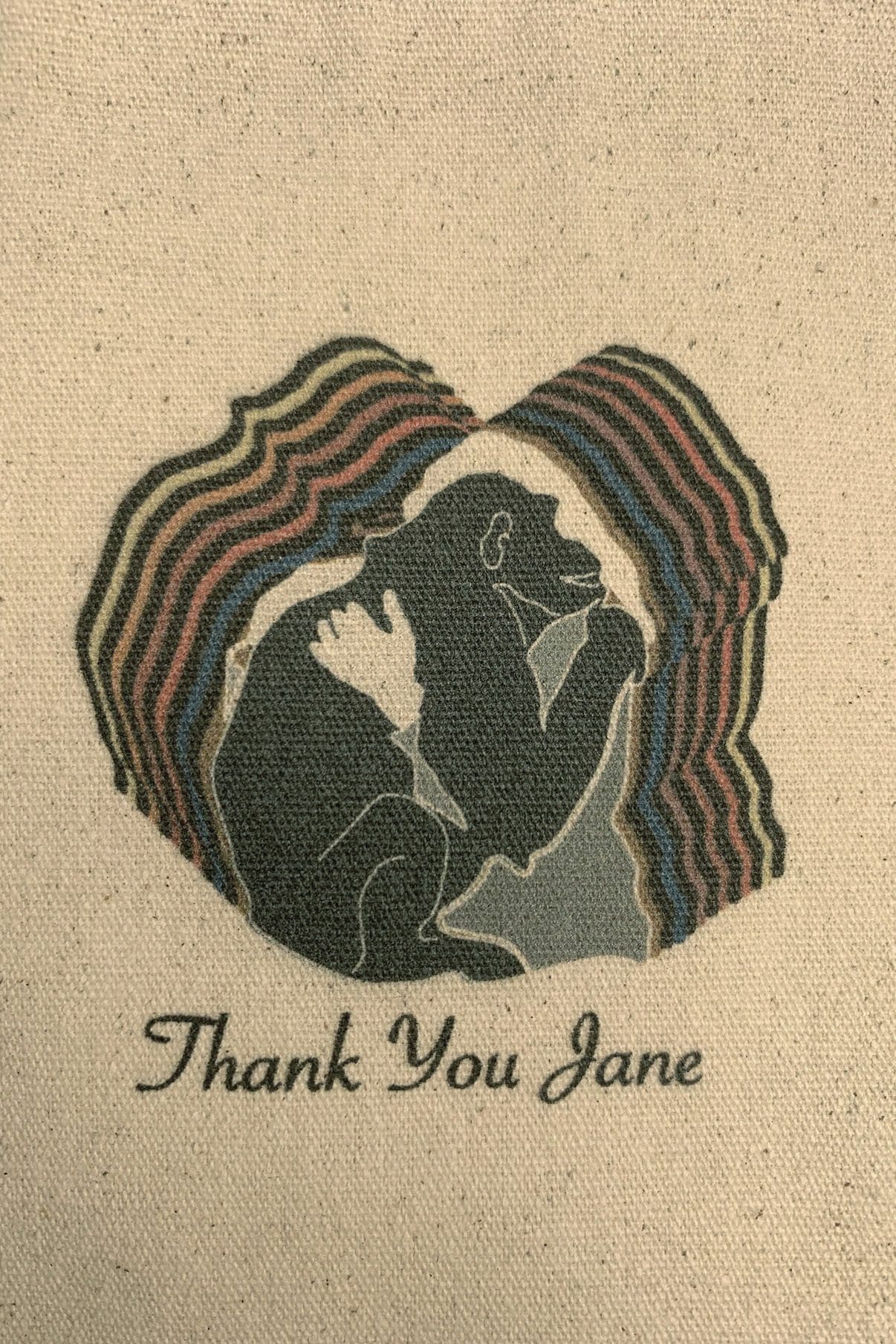 Cette pochette rend hommage à Jane Goodall, figure emblématique de la protection des chimpanzés et de la faune sauvage.