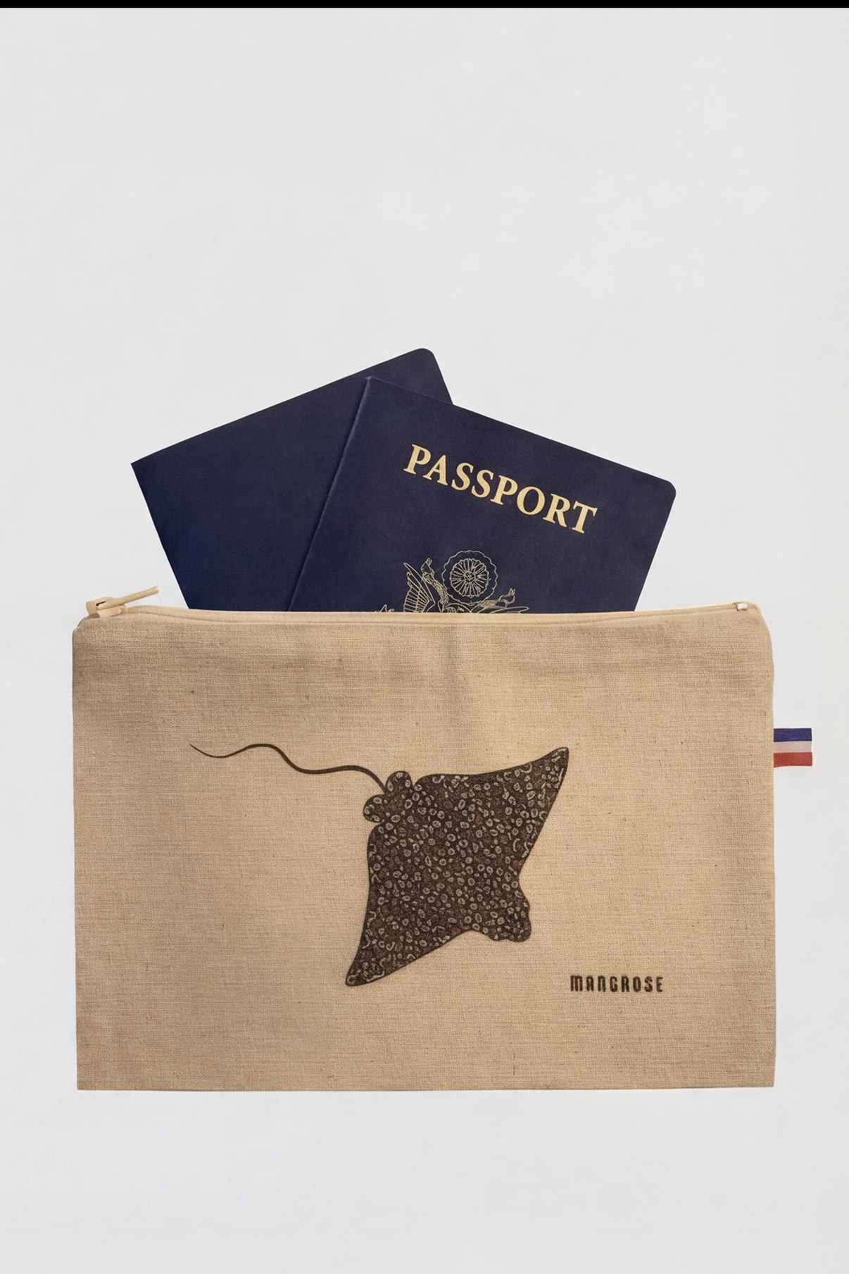 Cette pochette célèbre la Raie Léopard multicolore Mangrose, symbole de liberté et de grâce.