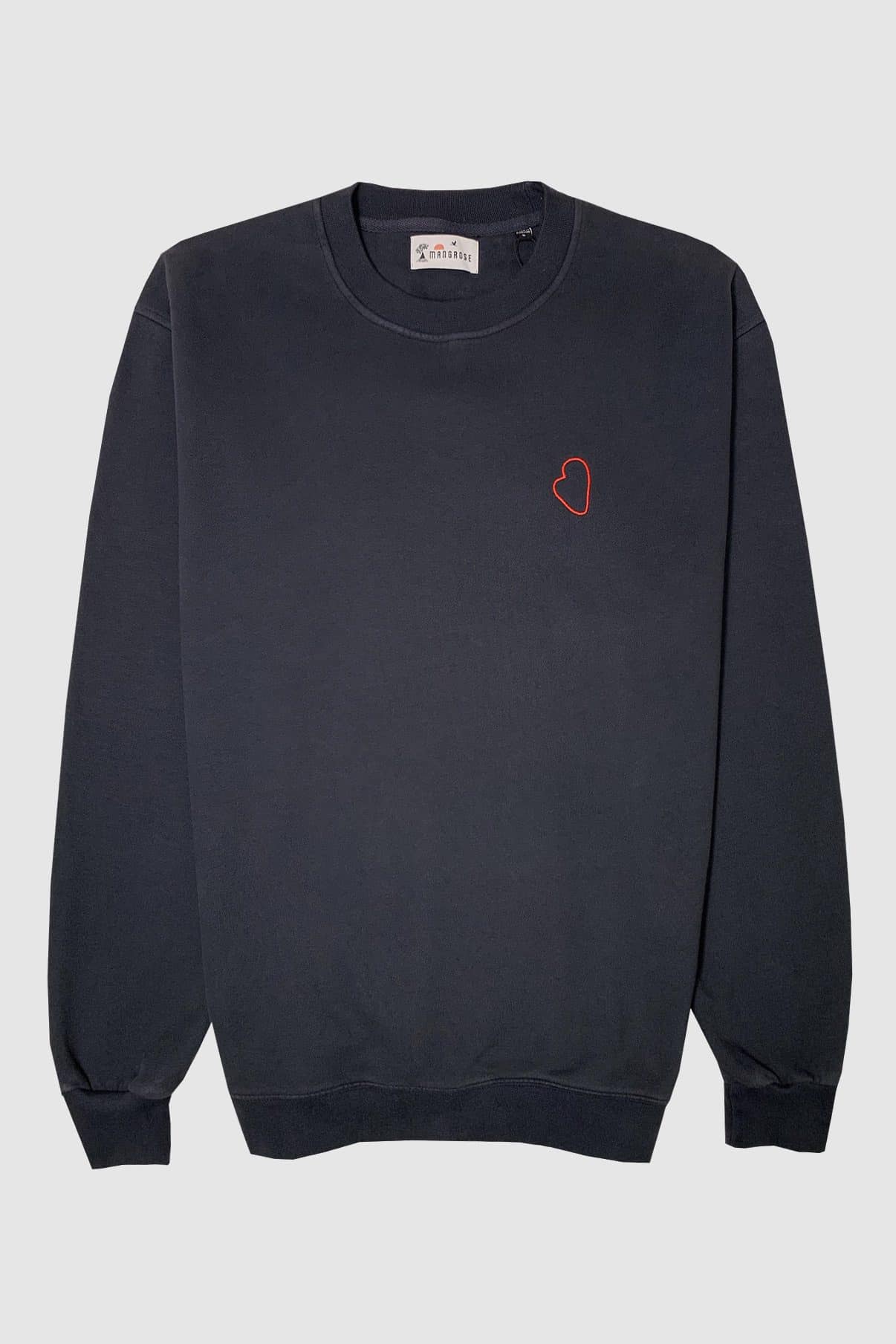 Véritable nouvel essentiel de la collection Mangrose, il arbore un petit coeur rouge brodé, cette fois-ci sans texte: une mini version du motif précédent. Facile à associer avec tout de type de tenue, il deviendra rapidement indispensable pour créer vos looks de tous les jours.