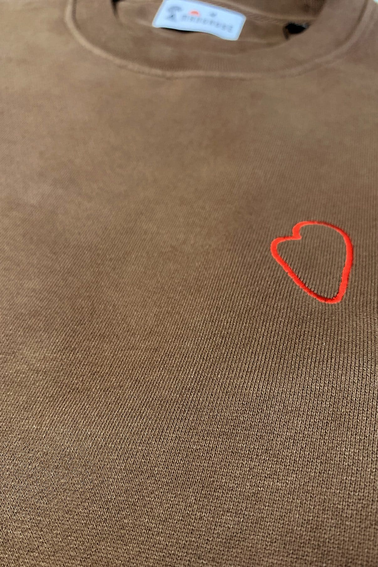 Sweatshirt coton bio marron chocolat broderie MINI COEUR