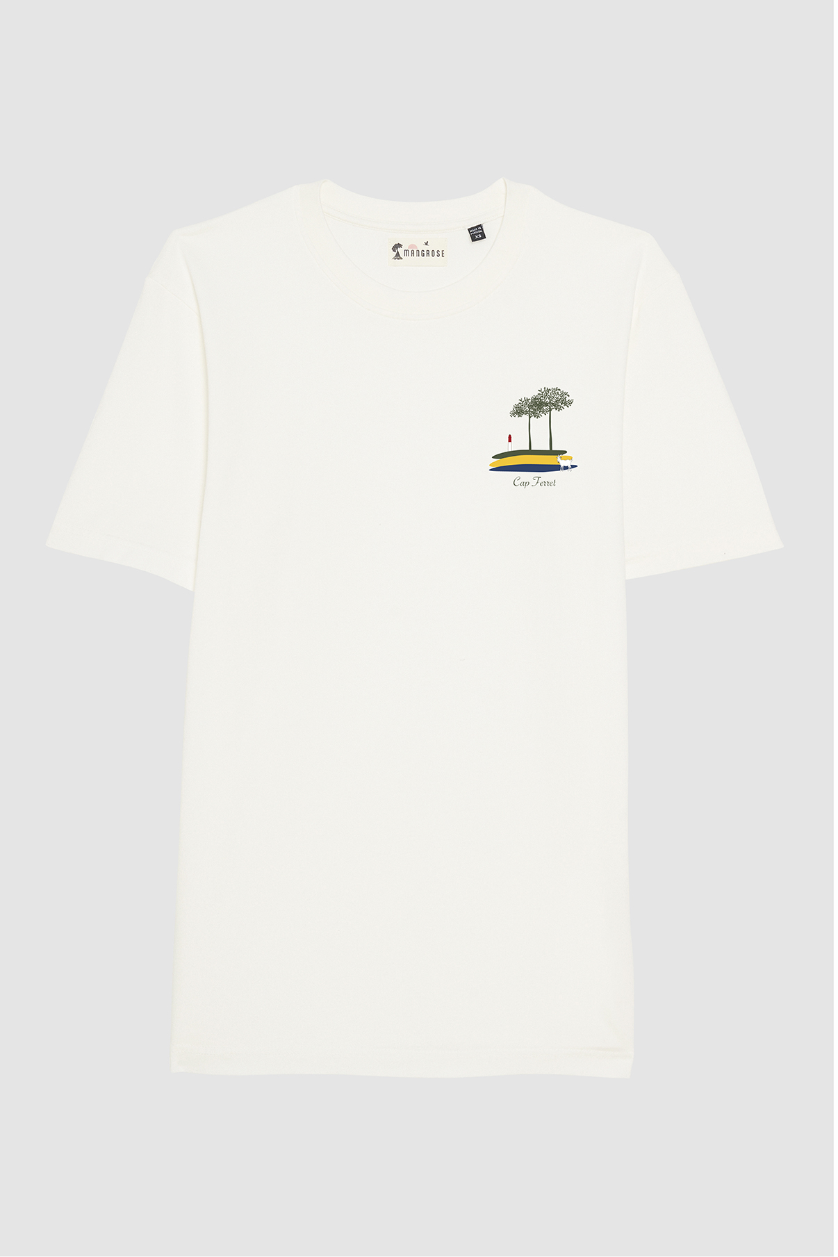 Ce dessin unique est imprimé sur des t-shirts bio éco-responsables, fabriqués en Europe, pour allier respect de l’environnement et hommage au patrimoine du Cap Ferret.