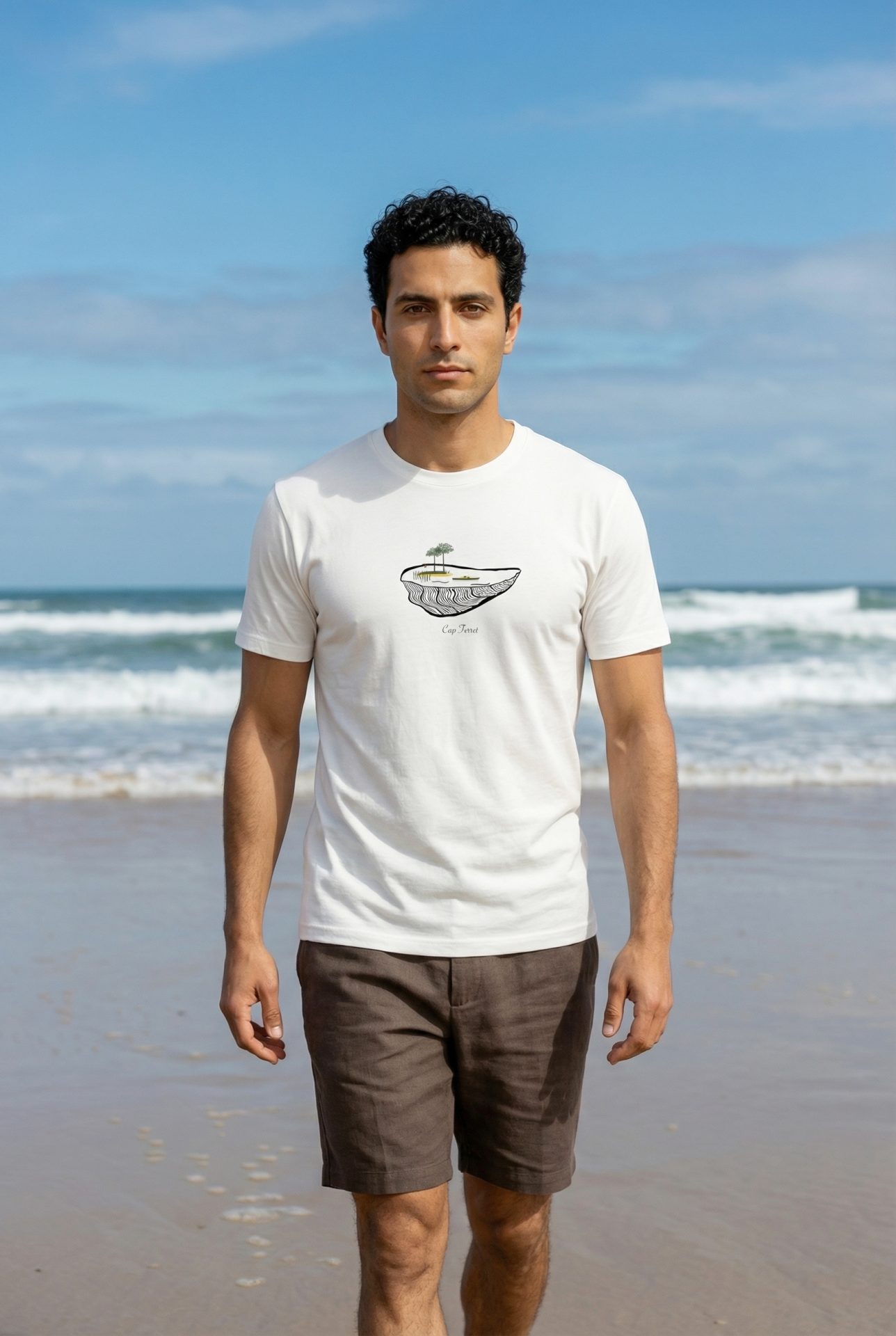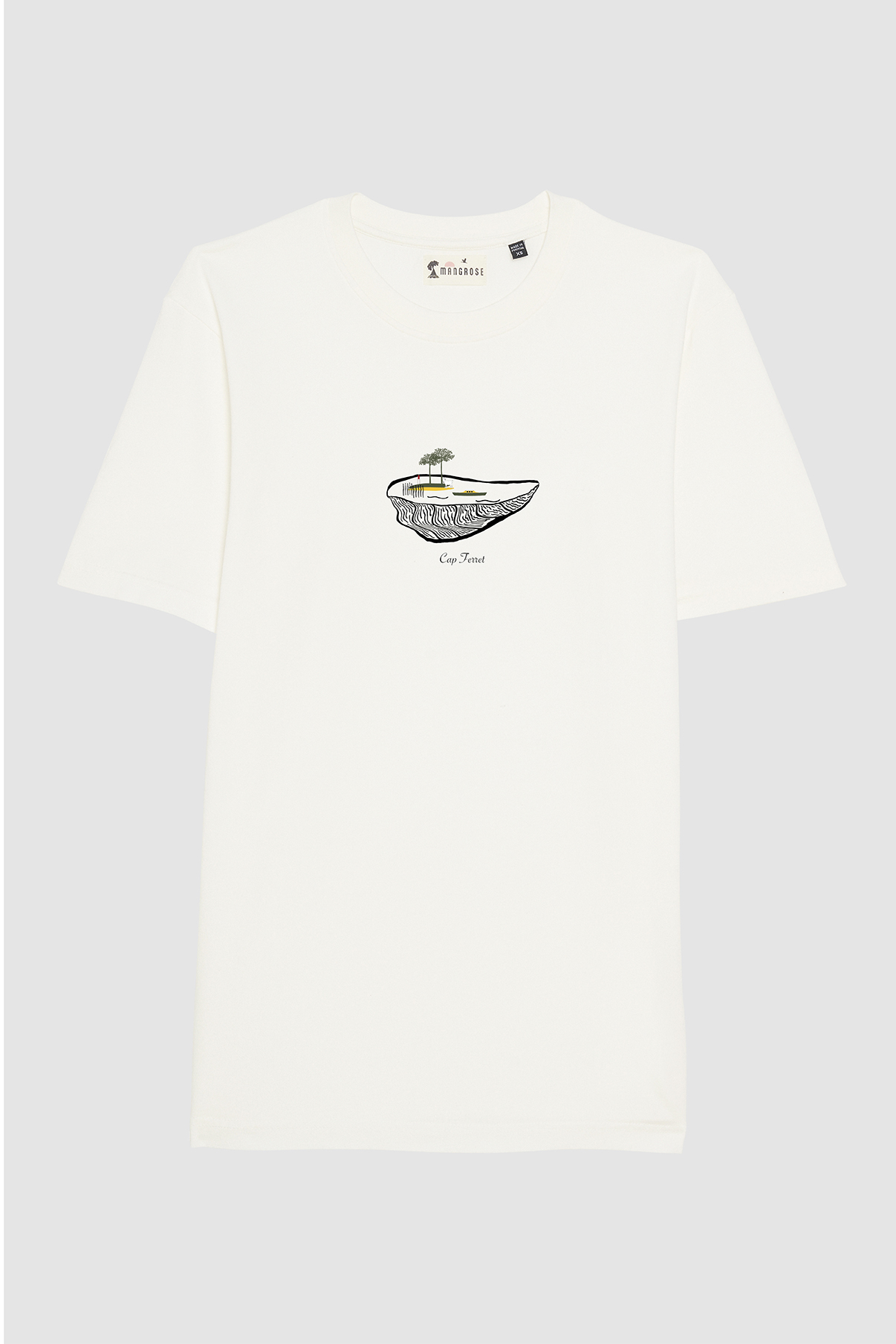 Ce t-shirt Mangrose met à l’honneur l’huître du Bassin d’Arcachon, symbole discret mais essentiel de l’équilibre marin.