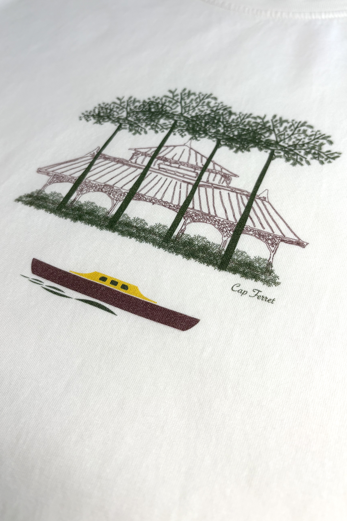 Le coloris kaki renforce cet ancrage naturel et évoque la nature de la presqu’île et du Bassin d’Arcachon.
