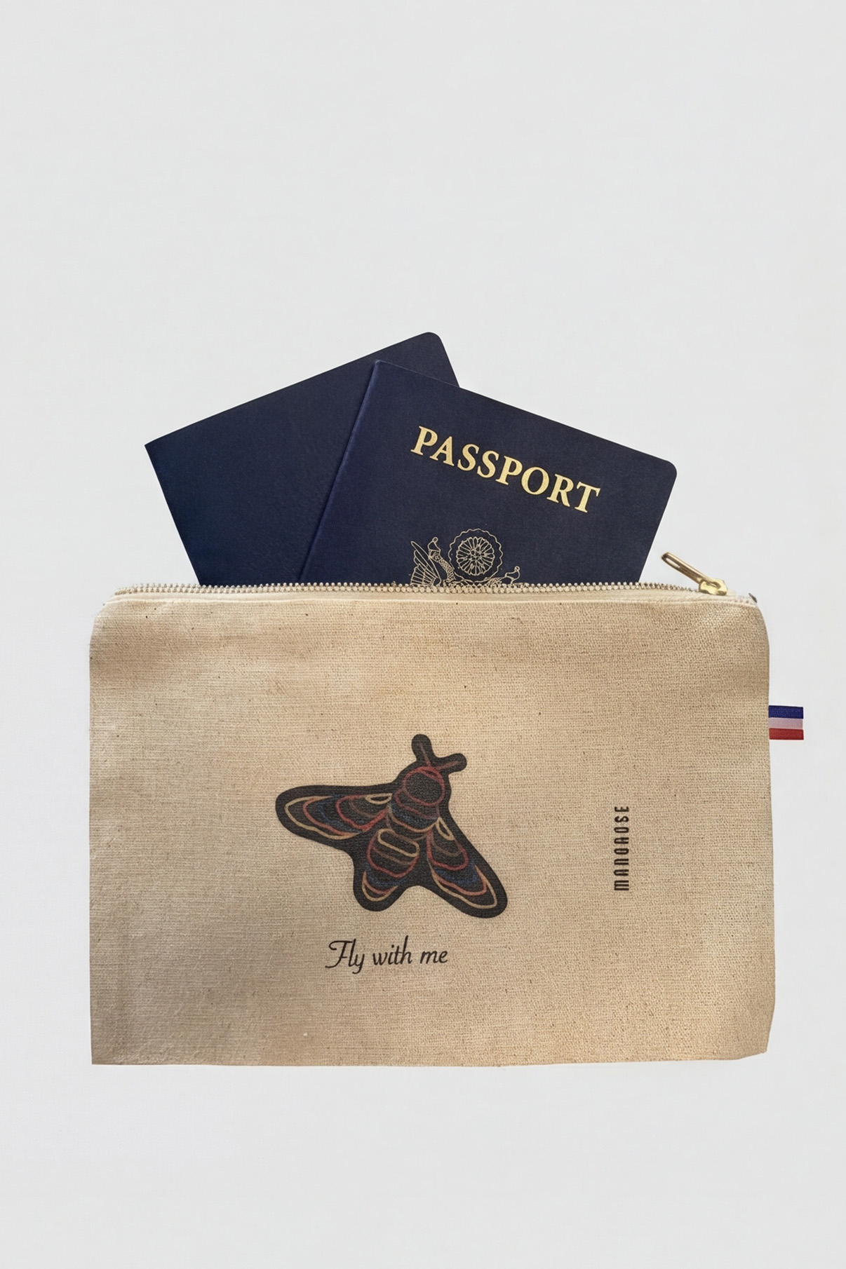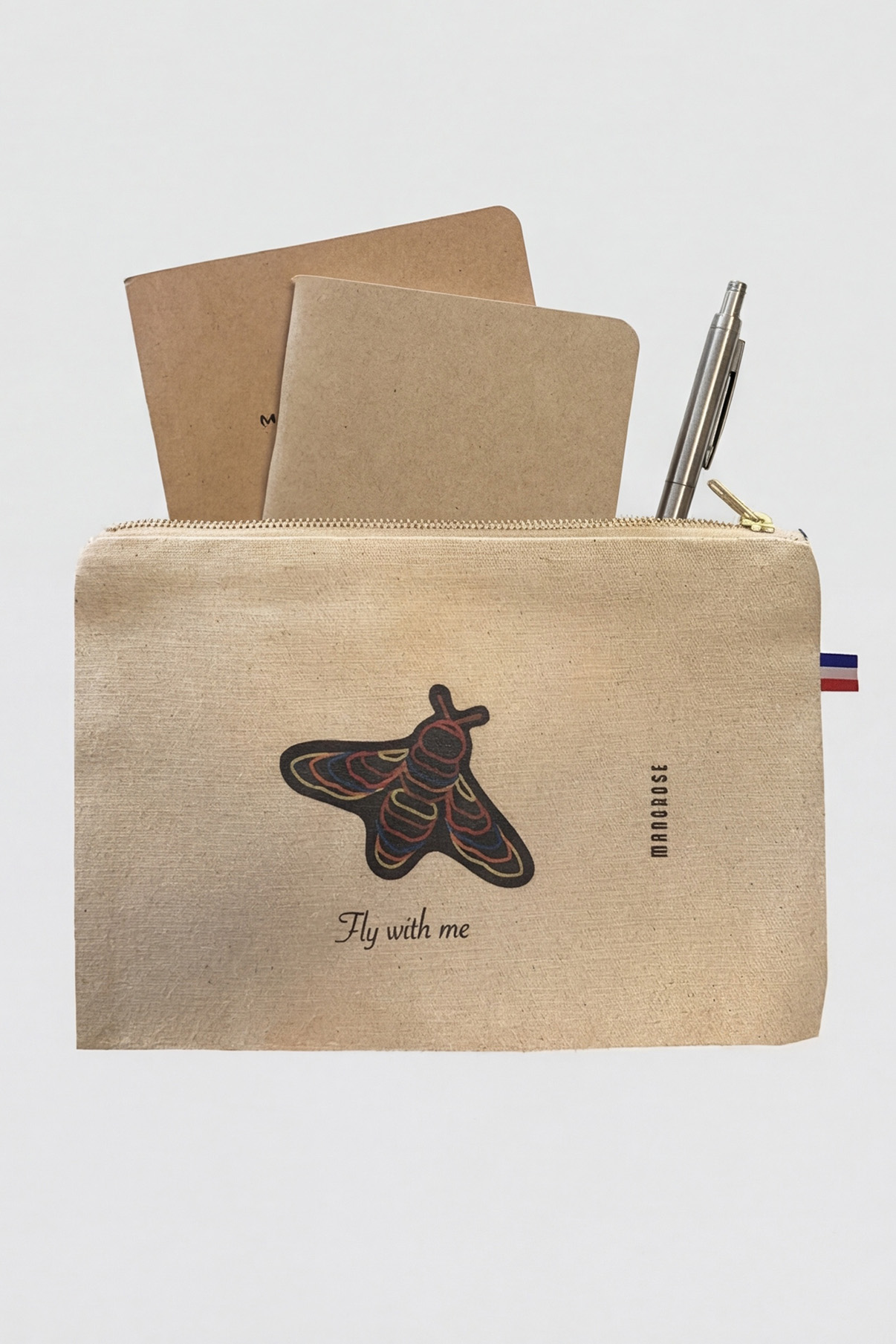 This natural canvas pouch, made in France, features the multicolored Mangrose Bee, a symbol of life, color, and biodiversity.