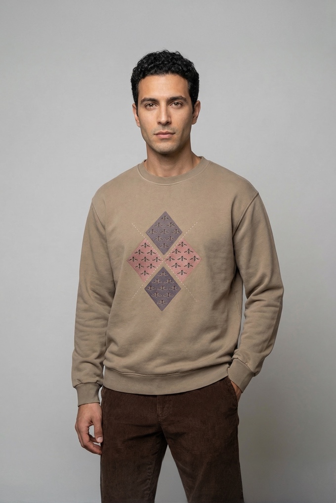 This unique design combines Mangrose’s main inspiration for this season: bees, with the preppy style inspired by American prep schools. The idea: a classic, smart wardrobe with elegant pieces inspired by school uniforms, featuring Burlington-style diamond patterns formed by Mangrose’s multicoloured bees, symbolising joy, biodiversity and a positive impact on our planet.