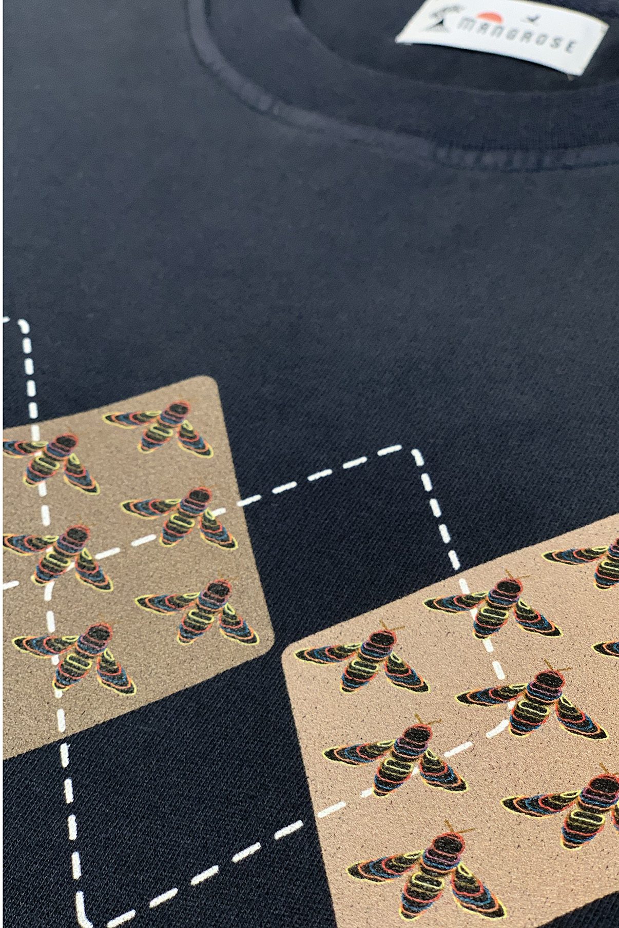 This unique design combines Mangrose’s main inspiration for this season: bees, with the preppy style inspired by American prep schools. The idea: a classic, smart wardrobe with elegant pieces inspired by school uniforms, featuring Burlington-style diamond patterns formed by Mangrose’s multicoloured bees, symbolising  joy, biodiversity and a positive impact on our planet.